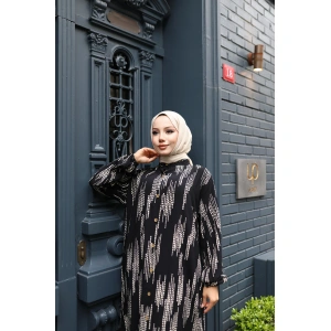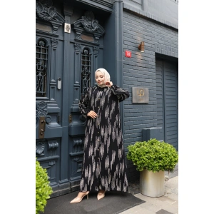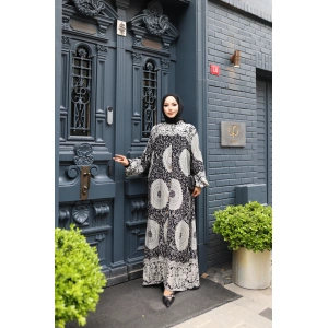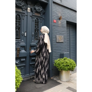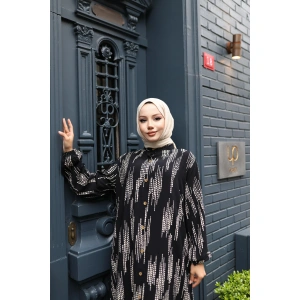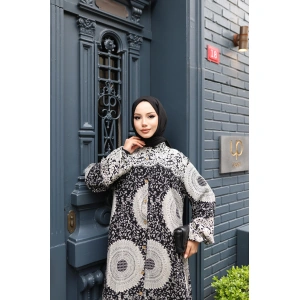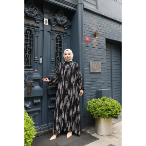 KADIN Siyah %100 Viskon Pamuklu Boydan Düğmeli Etnik Desen Bol Kesim Tesettür Elbise E742